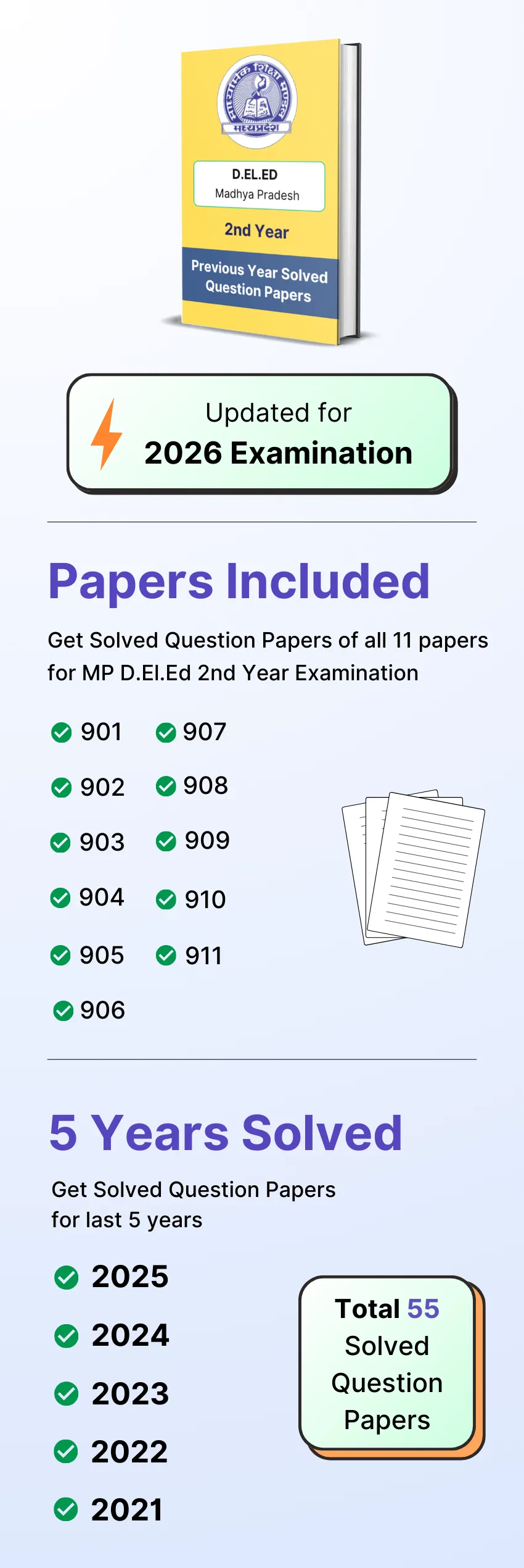 With 5 year solved question papers you get 55 solved solved question papers.