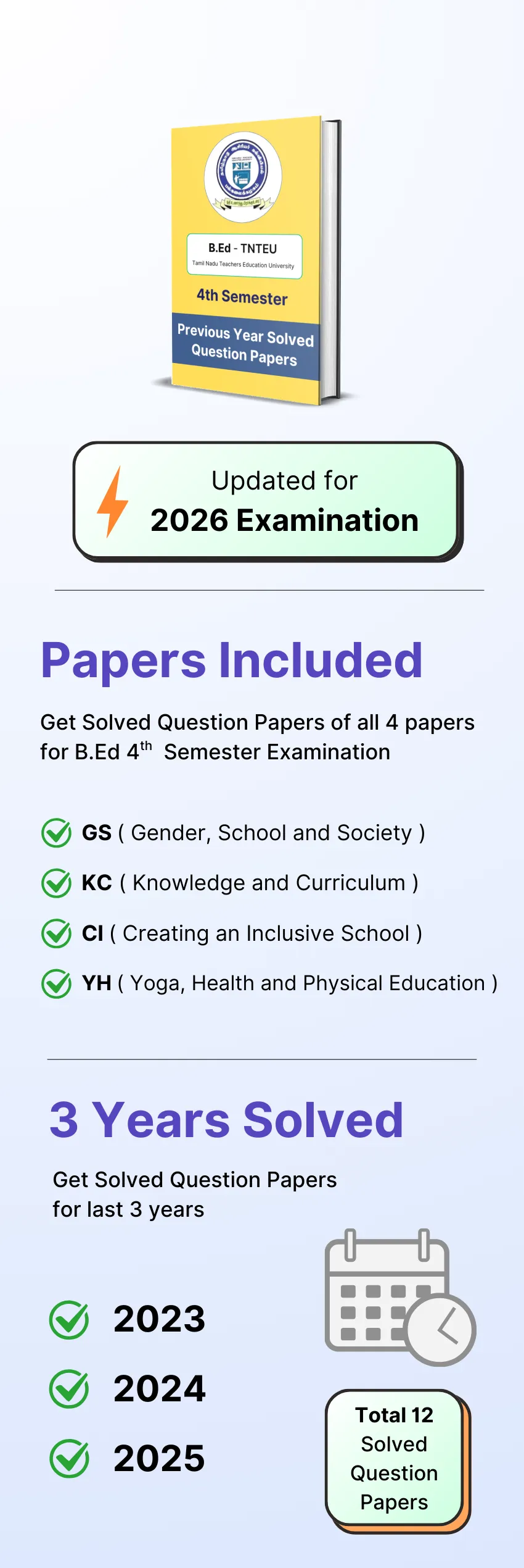With 3 year solved question papers you get 12 solved solved question papers.