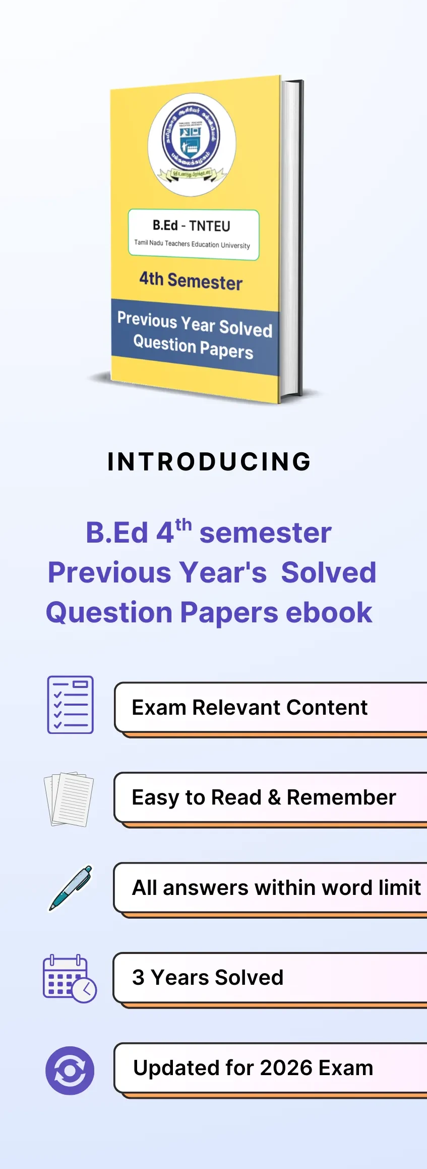 TNTEU B.Ed 4th Semester Previous Year Solved Question Papers eBook
